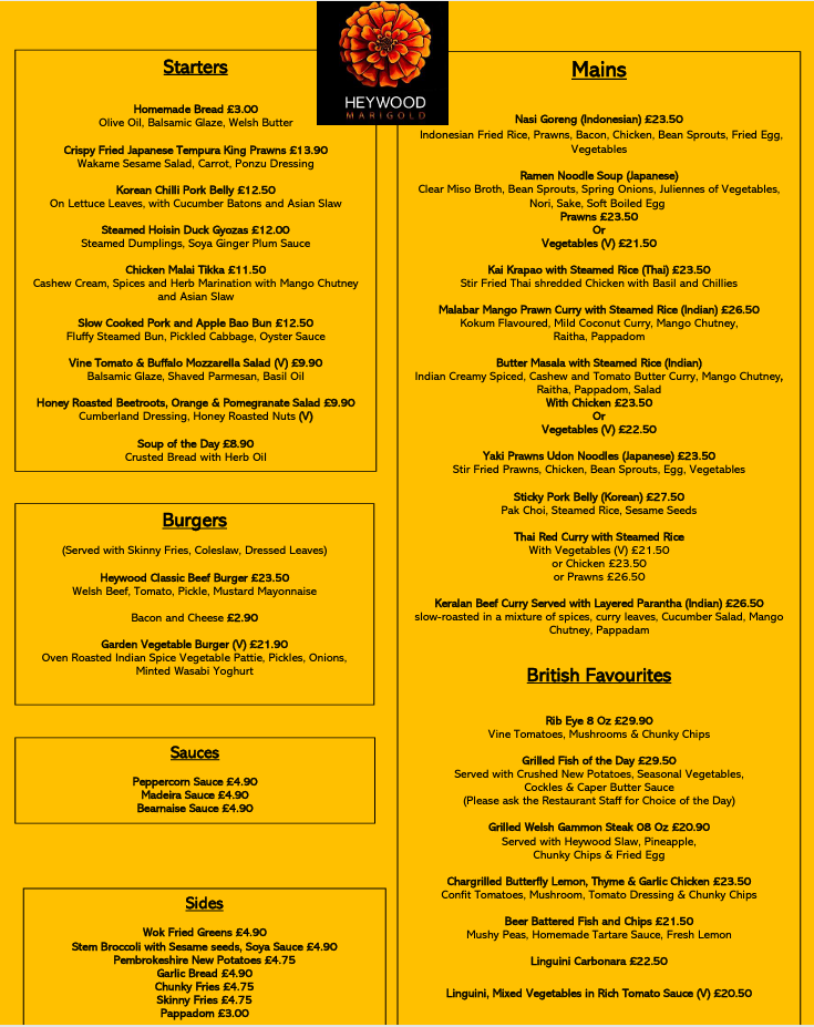 Welcome to Heywood Marigold, a culinary gem nestled within the tranquil confines of a spa hotel in Tenby, UK. Our menu showcases a delectable array of dishes, crafted with precision and passion, which leave diners raving about their experiences.